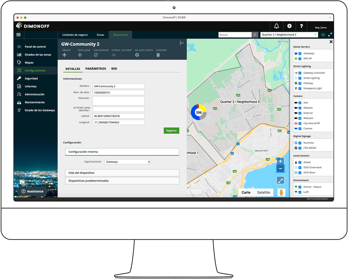 "Dimonoff nos permite gestionar mucho mejor nuestra ciudad. Las 6.141 luminarias de Shawinigan ahora pueden confiar en el sistema SCMS de Dimonoff cuando se trata de velocidad, seguridad y capacidad. Desde el punto de vista de la ciudad, el uso del SCMS de Dimonoff ofrece ventajas significativas: una solución adaptable, una plataforma robusta y la oportunidad de realizar un ahorro energético sustancial."